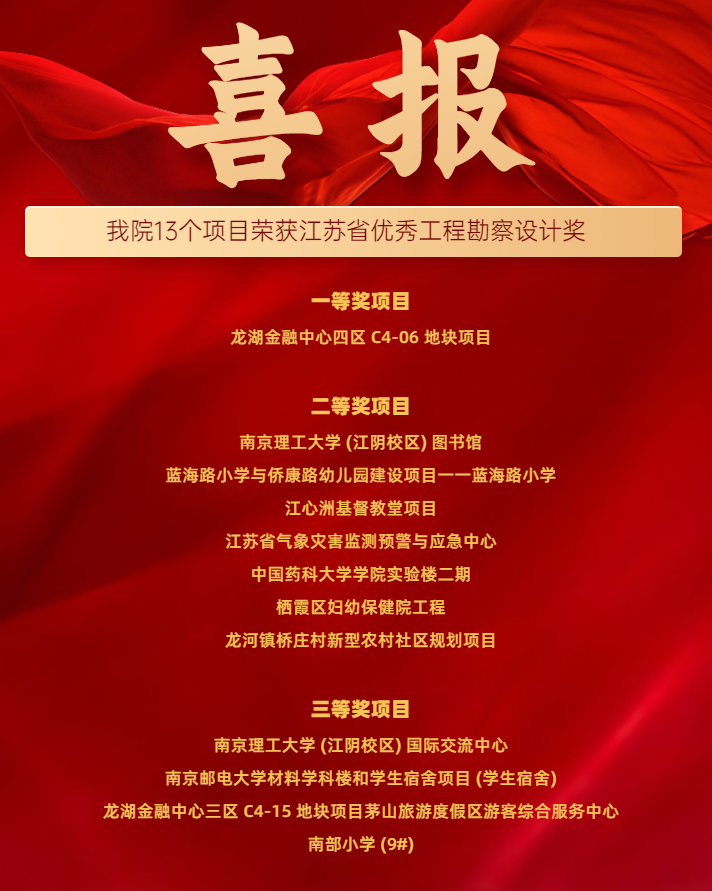 喜報(bào)|我院13個(gè)項(xiàng)目榮獲江蘇省優(yōu)秀工程勘察設(shè)計(jì)獎(jiǎng)